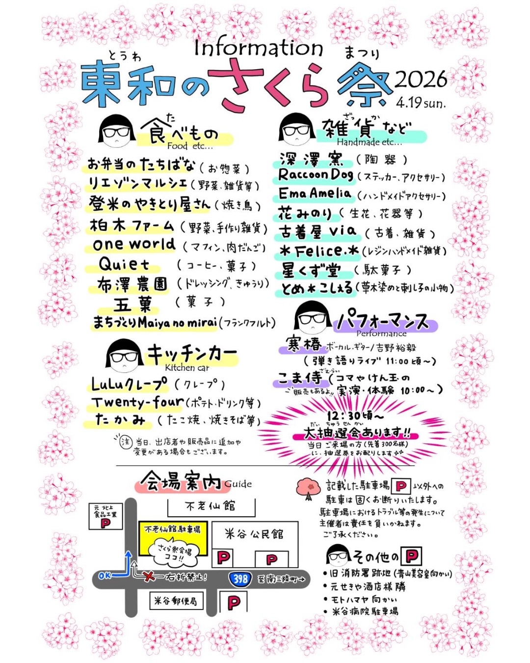 • 「東和のさくら祭」開催のおしらせ🌸(2026.04.01 掲載)