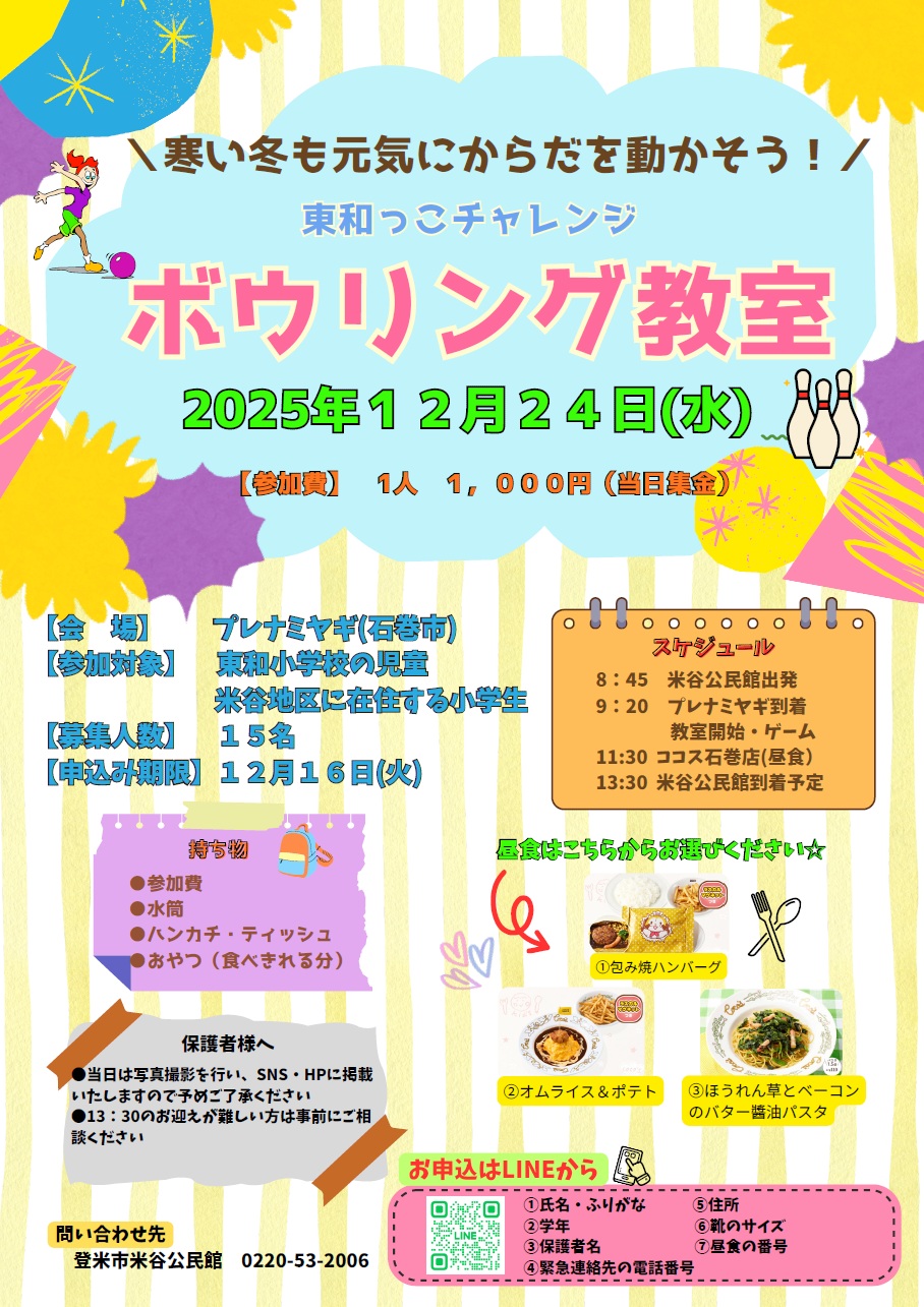 • 東和っこチャレンジボウリング教室参加者募集🎳🎶(2025.11.25 掲載)