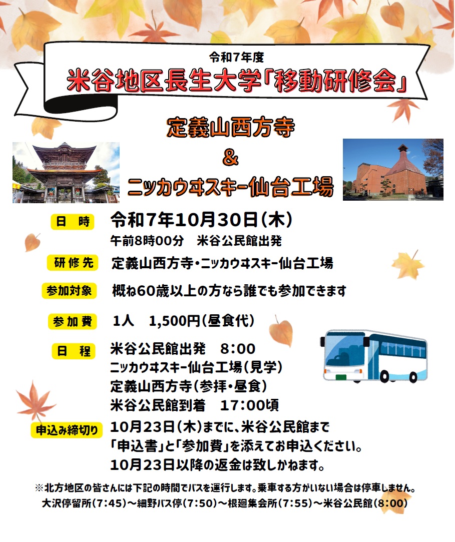 米谷地区長生大学移動研修会参加者募集🍁♪