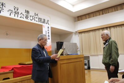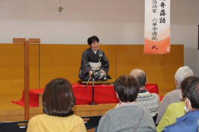 2月18日(水)、米谷地区長生大学第4回学習会並びに閉講式を開催しました。今年度最後の学習会は、落語家の六華亭遊花氏をお招きし、方言を巧みに取り入れた「東北弁落語」に会場の皆さんは大笑い!!